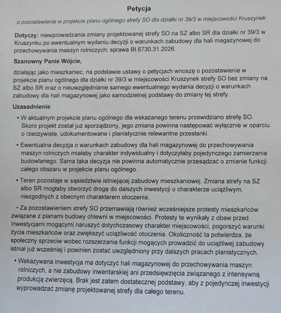 Petycja przeciwko przekształceniu działki z SO na SR
