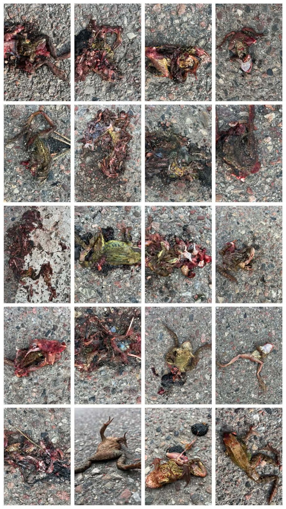 zdjęcia martwych płazów na ul. Leśnej, 23.03.2026