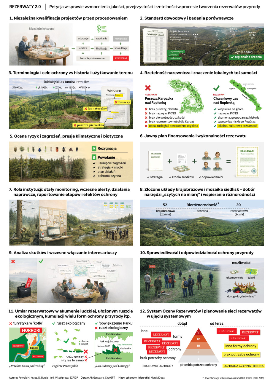+ infografiki: System Oceny, Rezerwaty–Podkarpacie, Rajskie, Brak Puszczy, Piktogramy Postulatów. Wszystkie pliki Petycji 📦 tutaj (ZIP, 10,6MB)