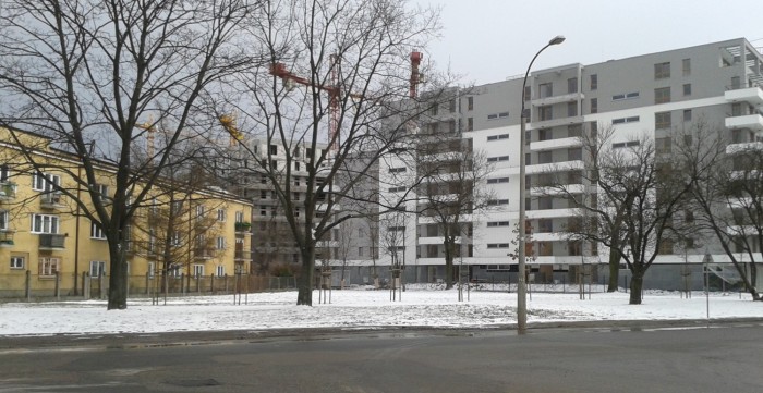 Bliskość miejskich parków (im. Szymańskiego i im. Sowińskiego) nie może być dla władz miasta usprawiedliwieniem dla zabudowywania każdej najmniejszej miejskiej działki w okolicy, szczególnie w kontekście złamanych obietnic w sprawie utworzenia Parku Zielone Odolany oraz planowanego zmniejszenia skweru im. Pacaka pod biurowiec (Pozwolenie na budowę nr 326/14). Wymienione duże parki nie realizują potrzeby “małej zieleni” w bezpośrednim sąsiedztwie bloków - zieleni, którą mieszkańcy widzą za oknem i mijają w drodze do pracy. Ich podstawowa funkcja jest rekreacyjna - nie są w stanie w dostatecznym stopniu pełnić funkcji integracyjnej dla mieszkańców okolicznych osiedli.