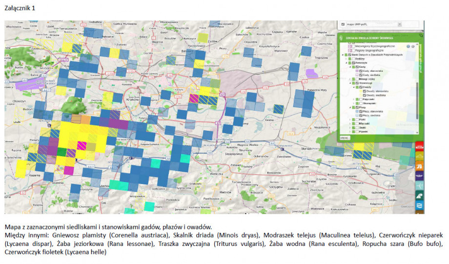 aerosolami będzie negatywnie oddziaływał na płazy, gady, ale też bezkręgowce odnotowane w obrębie obu starorzeczy. Inwentaryzacja roślinności tych obszarów wykazała również obecność gatunków rzadkich (Equisetum hyemale, Cuscuta europaea, Nymphaea alba), w tym odnotowano występowanie zespołu roślinnego grążela i grzybieni białych (NupharoNymphaeetum albae). Biorąc pod uwagę, że zaobserwowano również wkraczanie na teren obu fragmentów starorzeczy gatunków inwazyjnych, rozbudowa autostrady i prowadzone ciężkie prace ziemno-budowlane spowodują nie tylko nieodwracalną degradację siedlisk znajdujących się w obu starorzeczach, ale również stanowią realne zagrożenie zawleczenia gatunków inwazyjnych na tamte tereny, i przylegające do nich obszary cenne przyrodniczo (rezerwat Skołczanka, obszar Natura 2000 Dębnicko-Tyniecki obszar łąkowy)”.